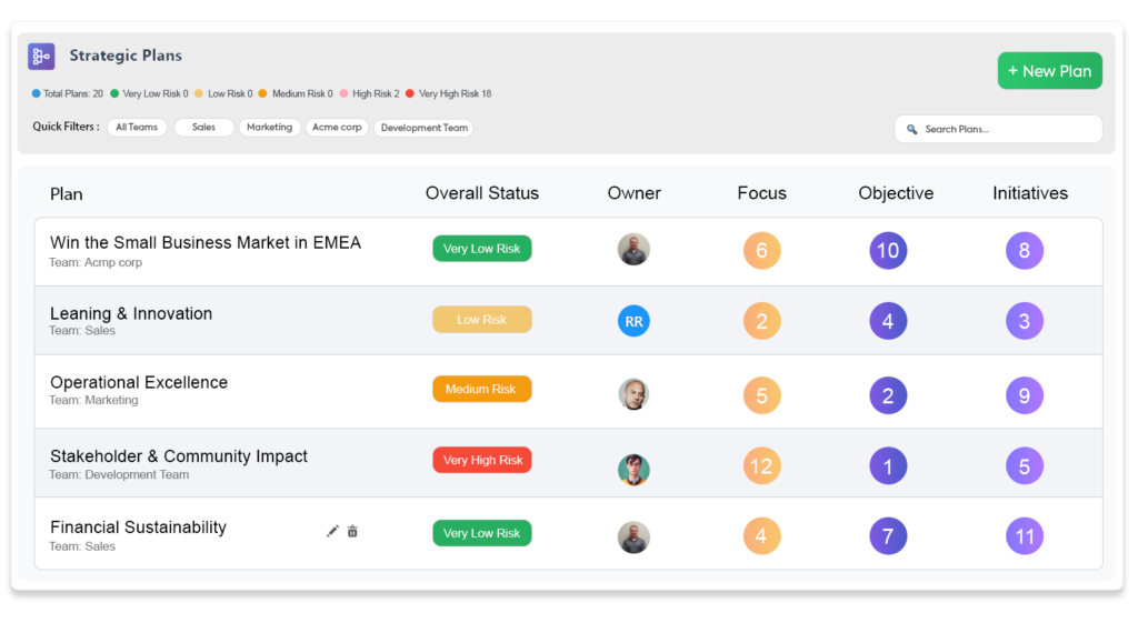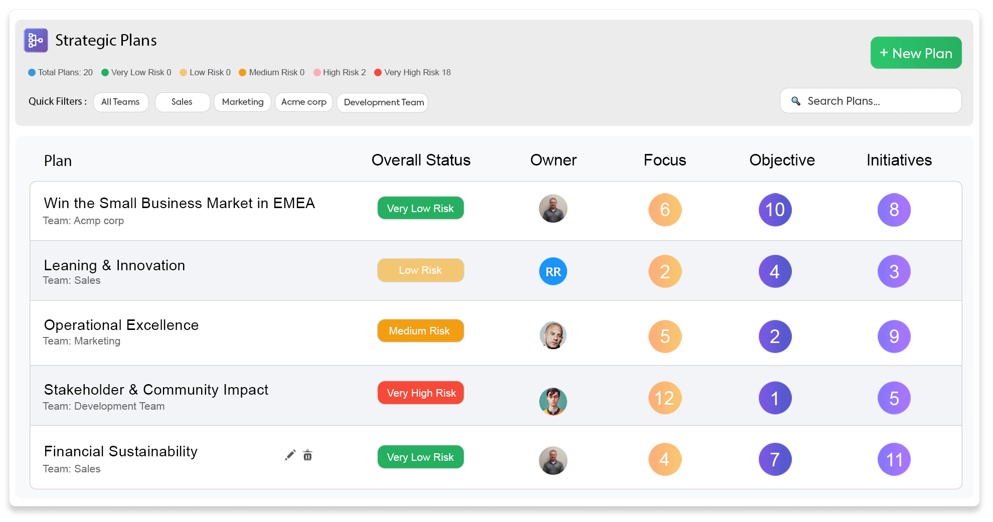 Boost Accountability: Assign owners, track initiatives, and ensure everyone is aligned to your strategy.