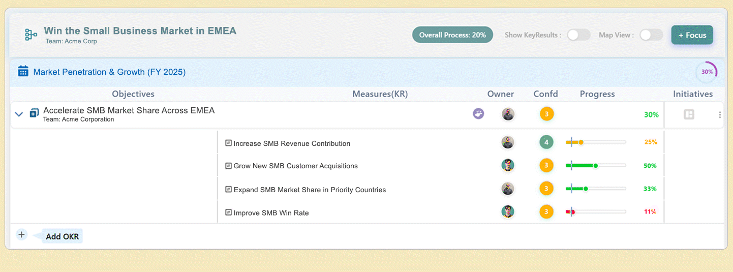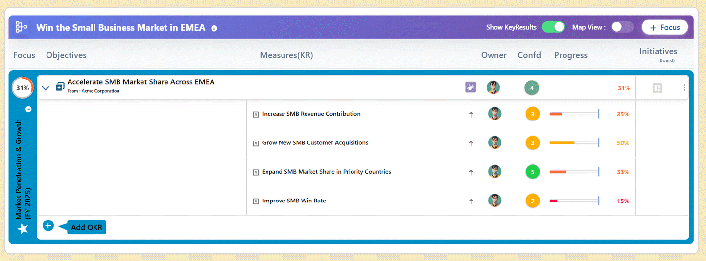 Once your Focus Area is created, link all related Objectives (Goals) and Key Initiatives to it.