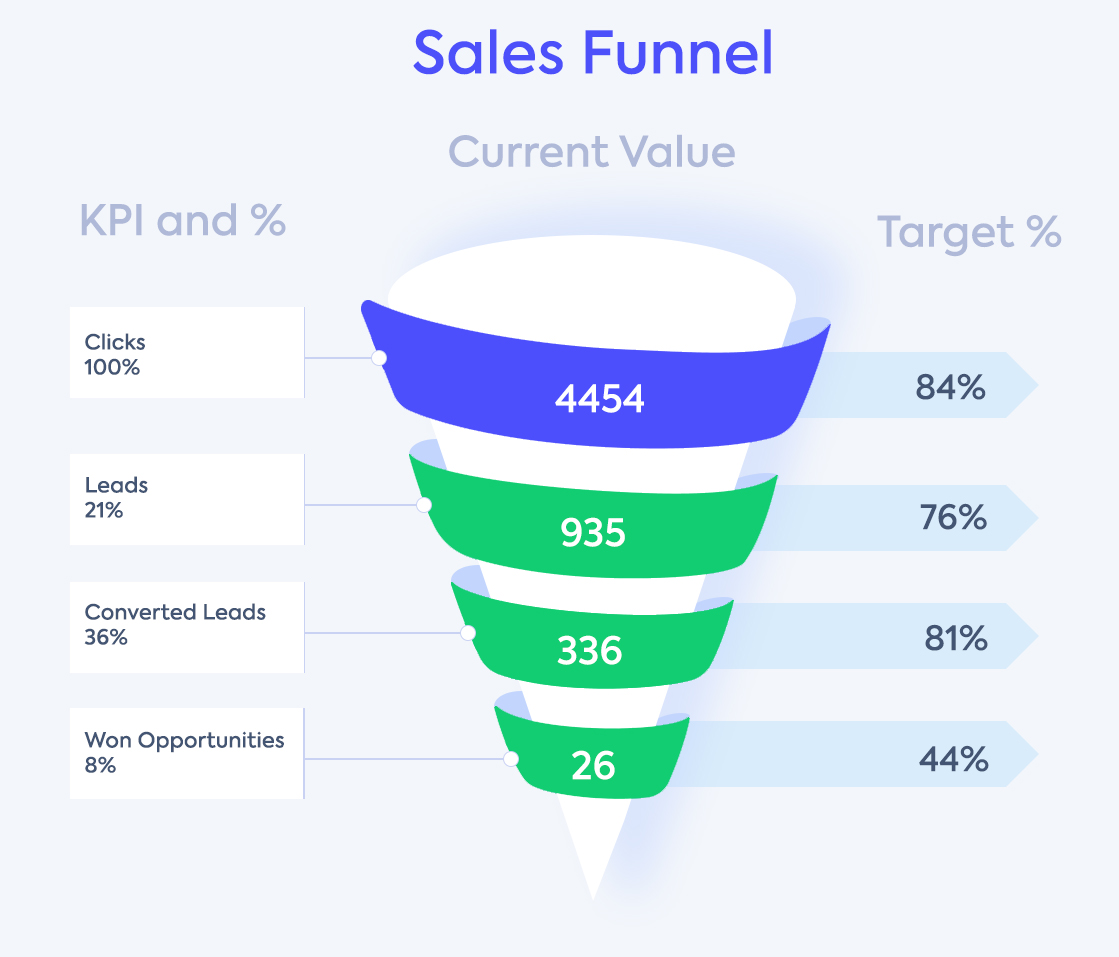 Visualize multiple KPIs simultaneously with intuitive funnel charts
